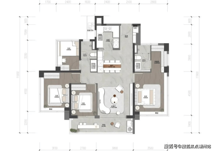 LDKG一体化设计:餐厨、客厅、阳台,加上X空间全部打开,可融合为一个大尺度空间;社交厨房:烟道外置,厨房空间更完整;餐厨互动,丰富场景空间、增加交流互动;豪华主卧套设计:步入式衣帽间、主卧卫生间首创200化妆柜体、270°观景主卧;高效收纳:转角入户,800库+鞋柜空间,动线流畅,更多收纳面积;•居住体验:外窗外装,室内空间更大;卧室均可实现三边上下床;卧室采用中空夹层玻璃,提供更加安静,通透的居住体验。可变空间:根据不同需求进行灵活调整:厨房打开形成中西厨+岛台空间;次卧打开,形成横厅X空间。功能格局:4房2厅2卫,全飘窗赠送;南向三房4.5开间,7米面宽景观阳台;