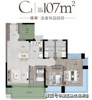 臻峯·建面约107㎡高奢风范四房,光与风常驻家中 舒卷人生大格局,约100%使用率 全南向通透,4开间朝南 270°全景主卧飘窗。