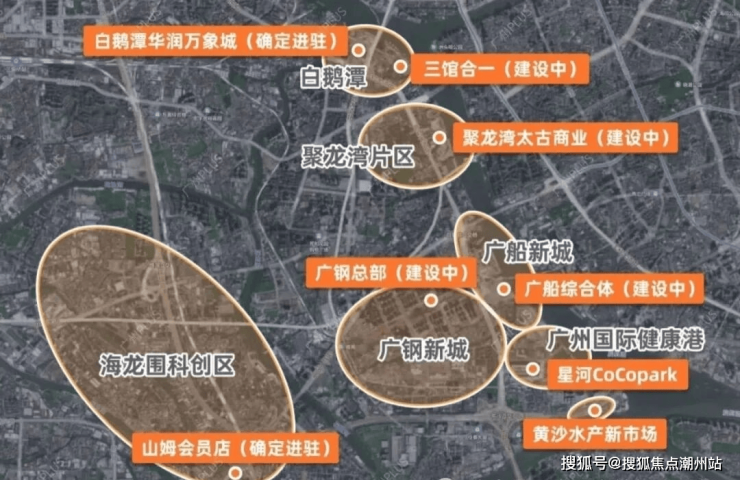 项目商业配套:项目北区中海花湾天地商圈已醇熟,一路之隔是比肩陆家嘴的125万㎡广船板块,打造总局集聚区。10 分钟范围享有中海商业/广州医药港/星河 Coco park、广百荔胜广场等商圈,吃喝玩乐一应俱全。