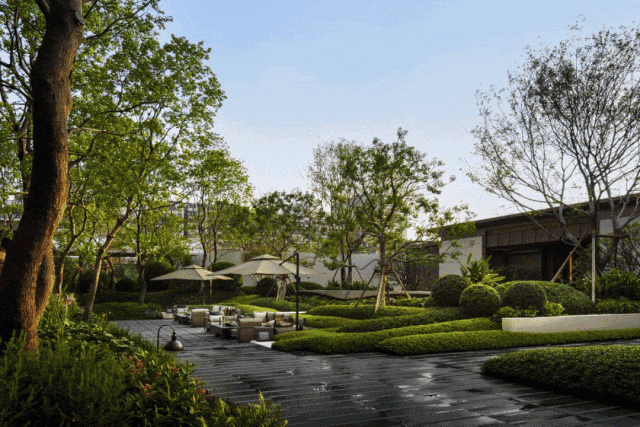 沉式庭院、约330米园林中轴,加上临江公园、规划绿地,整个社区被“三重园林”包裹。