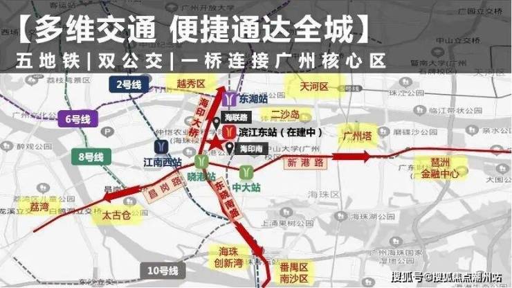 项目交通配套:明珠花园1公里内坐拥双地铁8号线晓港站和10号线滨江东路站在建中与项目距离都超1公里。自驾家门口就是东晓路。家楼下海印桥南公交站,24条线路穿梭广州各区。