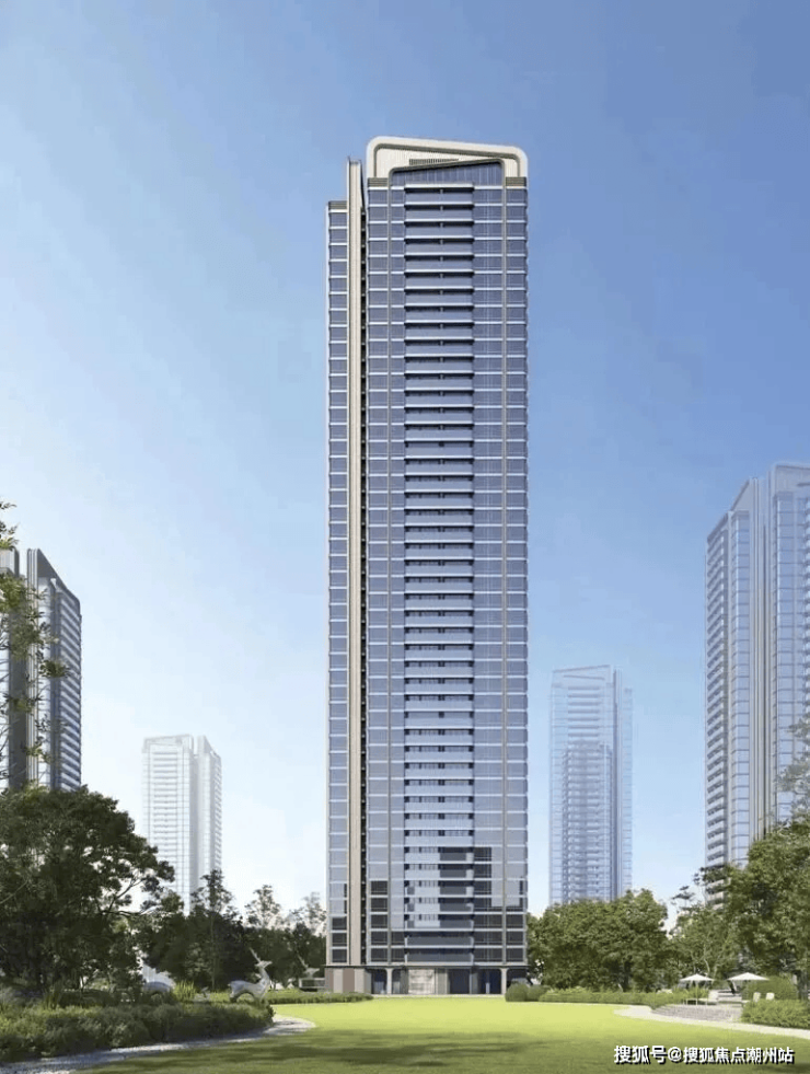立面融入“云山珠水”人文理念,以玻璃幕墙、铝板以及香槟金质感线条,打造极具品质感的公建化立面,应用270°转角玻璃延伸环幕瞰景视野