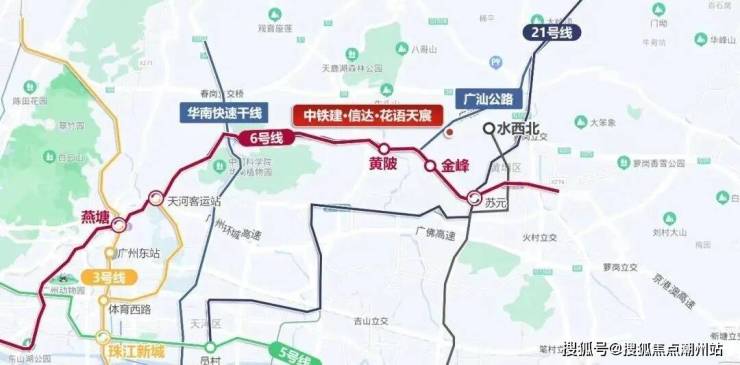 项目交通配套:项目距离地铁黄陂站跟金峰站直线都接近1.8公里实际步行起码2.8公里。6号线21号线交汇处,经黄陂站一步天河,快速通达金融城、琶洲、珠江新城三大CBD。自驾有广汕公路,通过广园快速、广佛肇高速。