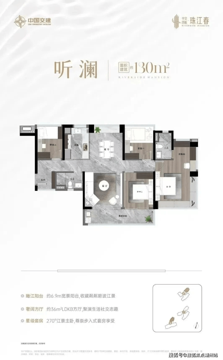 项目位于鱼珠CBD板块,临近中山大道东,珠江春算是整个黄埔旧改项目中体量最小的一个盘,也是距离珠金琶最近的一个,小区内部规划了购物中心、总部办公、高端住宅、生态公园等,其中融资房大概1490套左右,周边有三条地铁环绕,还有三座山体公园,项目首推的组团非常靠近珠江,距离珠江大概300米左右,部分户型高层都能望到江景,目前在售的组团都是改善户型,主要为130-144-185平的四房。