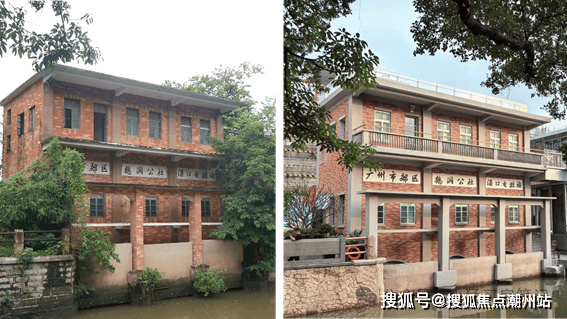 珠江边,建于1950年代的传统风貌建筑冲口仓,保留原来粮食仓库的红砖外墙、原木房梁、人字山墙等建筑特点,改造成为复合型城市展厅——聚龙湾展示中心。