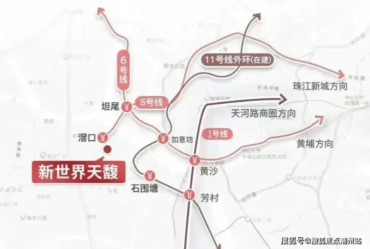新世界·天馥距离地铁5号线滘口站仅400米,为始发站,无需换乘可直达珠江新城等核心区域;周边有4条隧道及珠江大桥,自驾出行便捷。