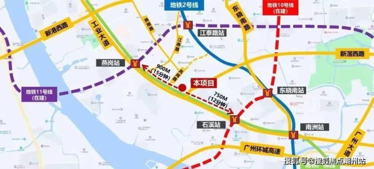 交通配套:中建天钰坐拥双地铁,位于广佛线燕岗和石溪两个地铁站之间,步行距离分别是750米和900米,目前开通的是广佛线,燕岗站同时是大环线11号线的站点,去海珠琶洲、天河、越秀等核心板块都很方便;石溪站是广佛线和10号线的换乘站,可直达珠城,同时东西南北各个方向都通行。10站范围内轻松通达珠江新城、琶洲、金融城等重点商圈,坐享核心区红利。