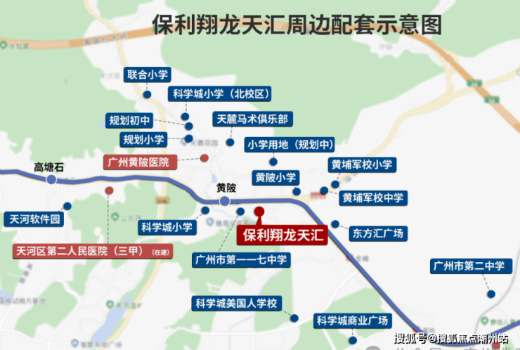 医疗设施:保利翔龙天汇驱车10分钟可到广州黄陂医院,周边还有广州医科大学妇幼女儿童医院,中山大学第三医院岭南医院{三甲}。
