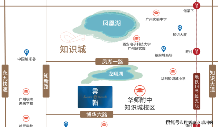 教育配套广开·云翰项目一路之隔九年制的华师附中知识城校区,直线距离不到100米。小学的话,大概率就是对口华师附中知识城小学。因为这所小学规模为42+6班,可满足8640户家庭的学位需求。附近的康大商住区总户数约4000户,而广开云翰+知城翰林+康大商住区,总户数1476+1537+4000<8640。学位是足够分的!知识城华附,是直属校区,是省属中学。