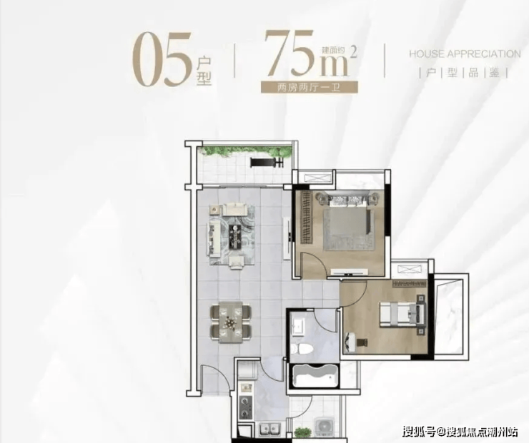 建面约75㎡的大两房,经典竖厅设计,LDK一体,动静分离,还是双阳台设计,两个卧室都做了大飘窗,既增加了室内的采光,又扩宽了生活空间。