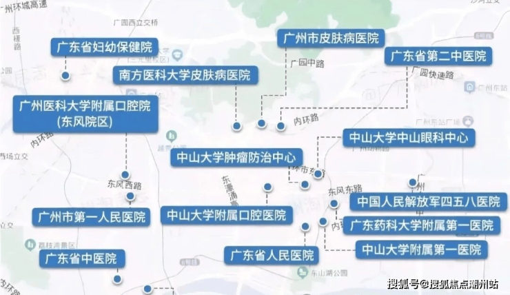 医疗配套项目3公里范围内广东省人民医院本部、中山大学附属第一医院、广东药科大学附属第一医院、越秀妇幼保健院等。
