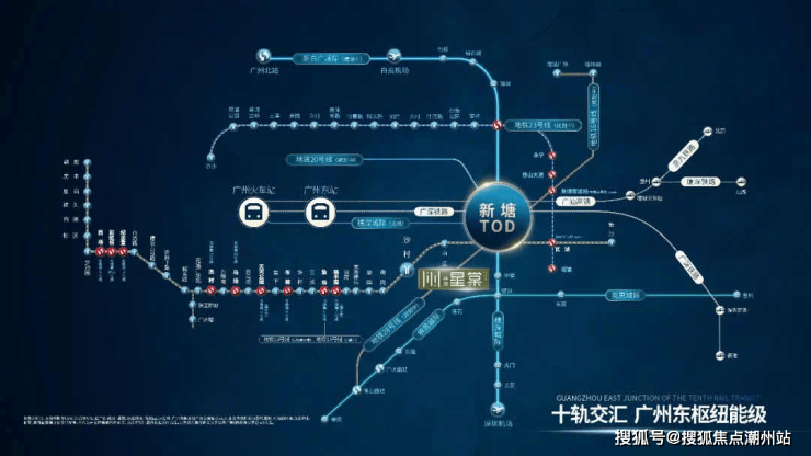 便捷交通项目毗邻13号线沙村站和白江站双地铁站,一站老黄埔,七站直达天河;在建13号二期横跨黄埔天河越秀荔湾和白云五大主城区,比肩3号线黄金动脉,开通后无须换乘,一轨直达珠江新城(花城广场北站),尽享主城繁华;项目位于新塘大道南侧,可快速接驳广园快速、京港澳高速和临江大道三大主干道畅达黄埔天河东莞深圳;一站新塘TOD,汇聚10条轨道:5条地铁【13号线(一期已建成、二期建设中)、16号线*、28号线*、20号线*、23号线*】连通广州中心、2条城际轻轨【穗莞深*、新白广*】连接大湾区城市群、3条高铁【广深铁路(已建成)、广汕铁路(建设中)、京九铁路*】连通省际,互通2大国际机场,日均人流量将达80万。