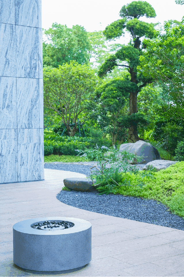 流水、瀑布等景观的营造,消弭了珠江与建筑的边界。让人步入小区中,也仿佛能听到珠江水的流动,瞬间忘却外部的喧嚣,投入自然的环抱。