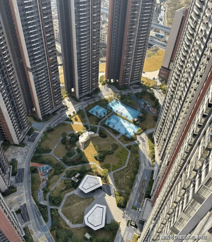广州增城新世界星辉占地约9万平,总建面约45.5万平,规划建有15栋住宅,分两个地块开发,由两座桥连接起来。采用围合式布局,最大楼间距超过200米,同时把中央园林抬高5米,塑造了更高视野的精奢社区。为了避免住户直接对视,追求更大的视野,项目塔楼采用的是独创的“工字形”设计,同时把楼栋扭转15°,使采光面与通透性达到最佳。