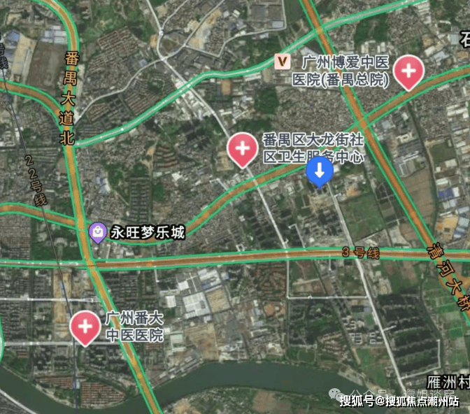 周边5公里范围内有三甲广州市番禺区中医院和二甲番禺区何贤纪念医院。