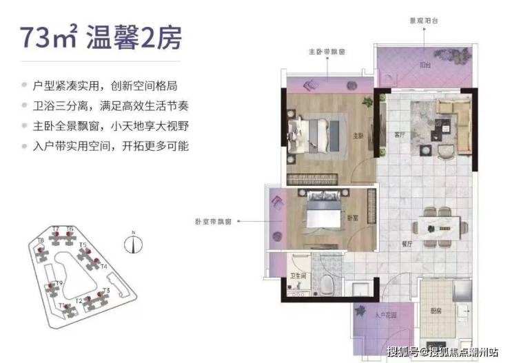 建面约73㎡户型:最优上车之选;设计精致却不局促,更适合当下精于收纳的年轻家庭。