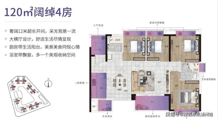 建面约120㎡的户型,不能用阔绰来形容了,略微有点“豪横”!别的户型有的它都有,横厅更是长约12米,视野采光绝对一流。4房设计更是让“三代同堂”的生活成为可能。非常适合改善选择。